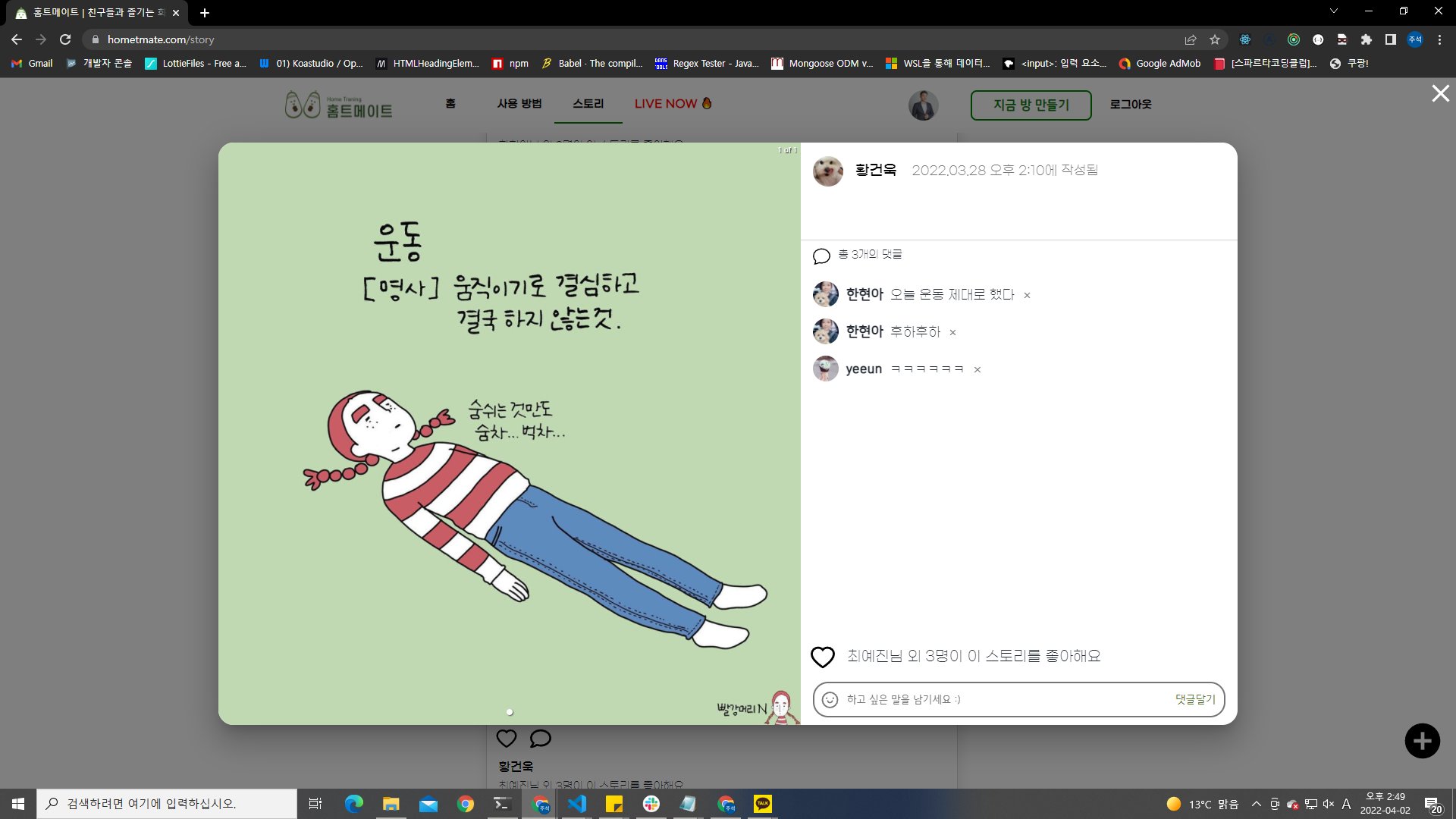 이번에 "홈트메이트"라는 사이트를 개발해서 소개 차원으로 글을 적게 되었습니다.