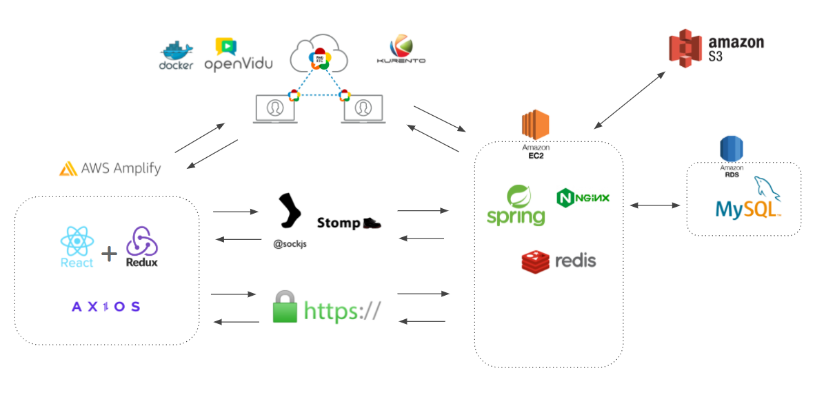 저희 서비스의 특징은 아무래도 WebRTC와 WebSocket 을 이용한 실시간 홈트레이닝 서비스인데요,