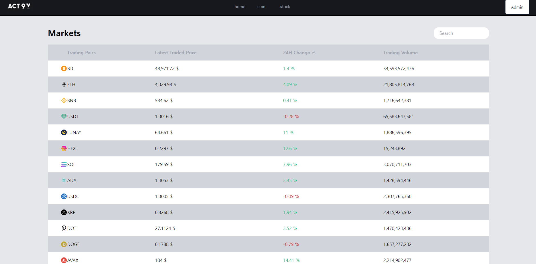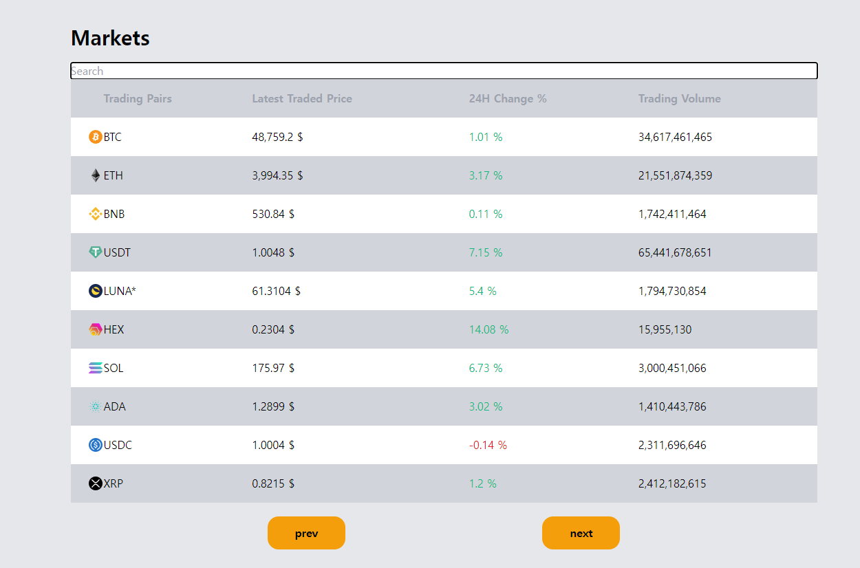 원래 계획했었던 것은 코인거래소에서 사용하는 마켓 데이터 표이며, 마켓데이터 표는 pagination을 구현시키지 않았기 때문에 pagination은 구현하지 않는 것으로 할 예정이다.