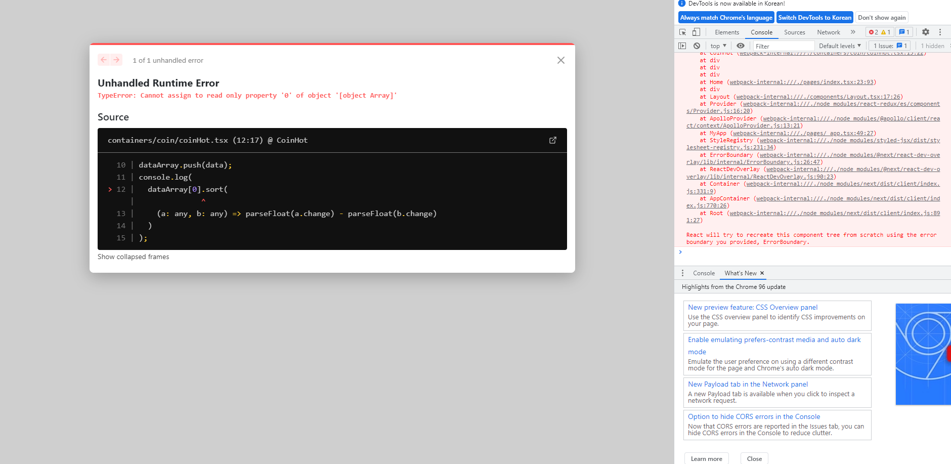 TypeError: Cannot assign to read only property '0' of object '[object Array]'