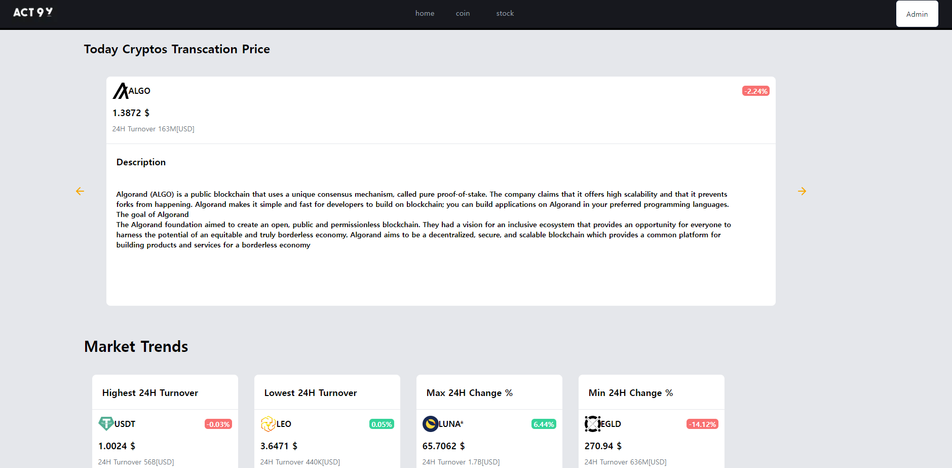 이번에는 코인 정보 슬라이드를 만들어주었다.