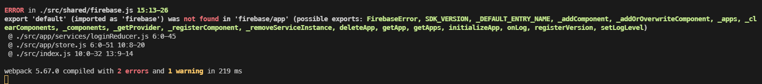 React 에서 Firebase Auth 를 사용하기 위해 다음과 같은 코드를 짰다가 에러가 발생했다.