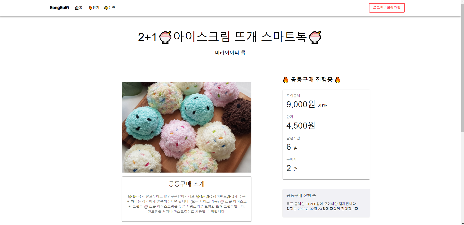 - 현지훈 => 게시판 및 댓글 CRUD 기능, 공동구매 및 취소 기능